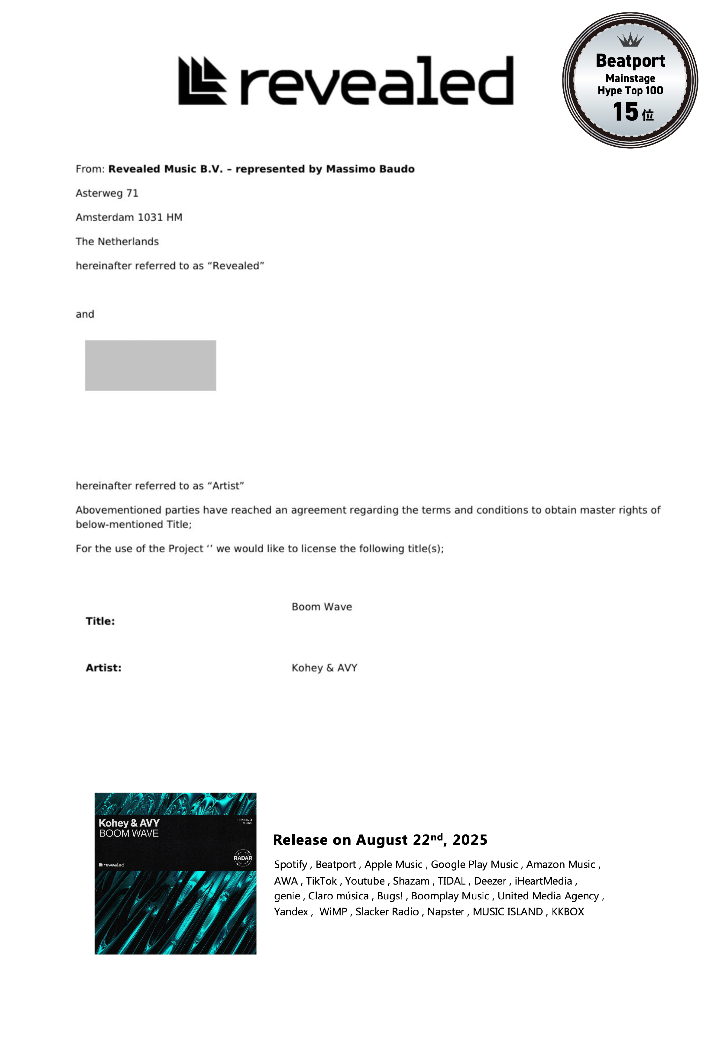 彼の楽曲 “Rising Rhythm” は Hardwell 自身によって ULTRA MIAMI でプレイされ、世界へとその名を轟かせました。そんな彼と当社が共同で完成させた“ワールドプログラム”は、世界へ最短で直結する唯一無二のプロジェクトとして"確信"を持ってご案内させて頂きます。