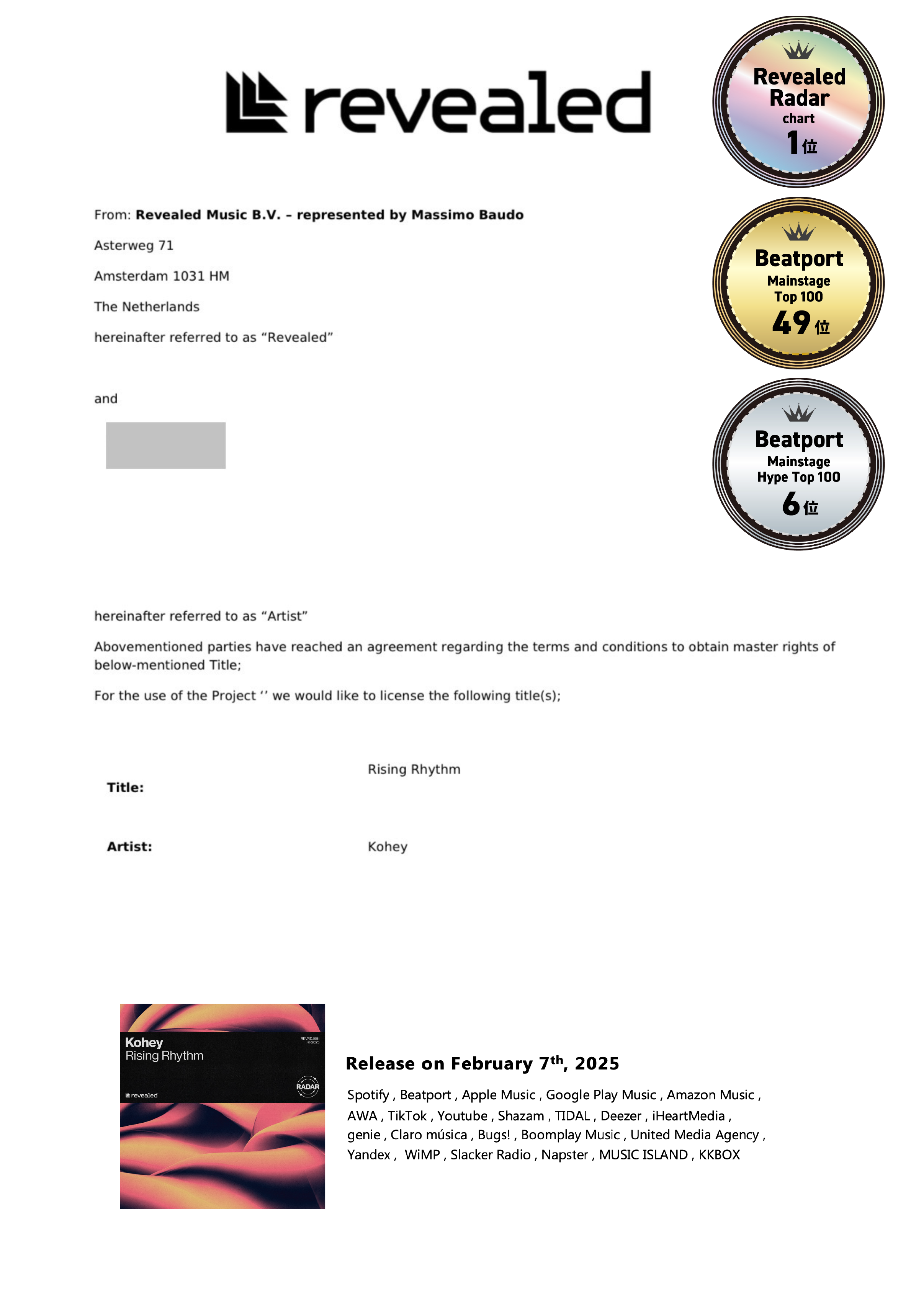 “Revealed Recordings” から数多くのリリース実績を誇り、同レーベルよりオフィシャル・サンプルパックも発表するなど、日本人として類を見ない結果を刻み続けるKohey。